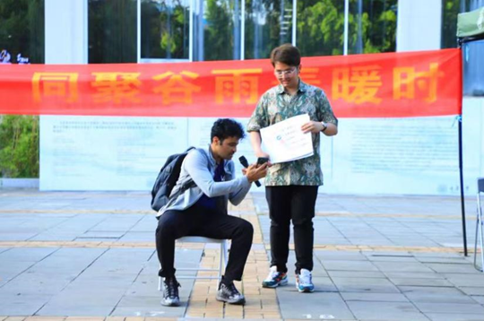 的印度尼西亚留学生傅维强带来了双人脱口秀表演,诙谐幽默地讲述了阿提克在中国发生的趣事,引得过往师生纷纷驻足观看。最后,庆祝活动在表演同学和场外观看同学的《中国话》大合唱中顺利结束。