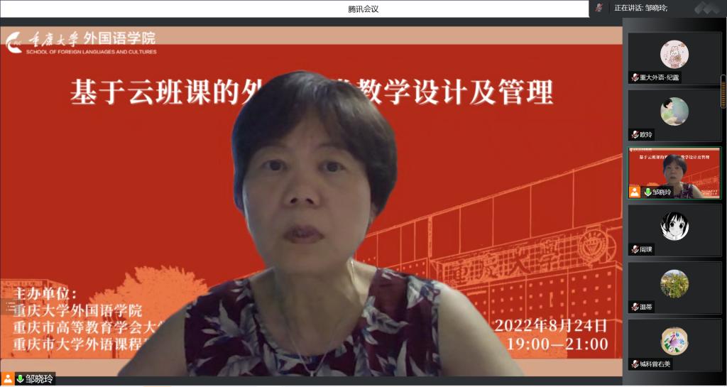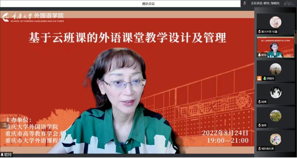 协同重庆市高等教育学会大学外语教学研究会以及重庆市大学外语课程群虚拟教研室于2022年8月24日19:00至21:00举行了“基于云班课的外语课堂教学设计及管理”线上直播专题讲座。本次讲座由小黄书