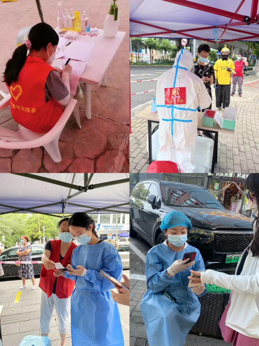 还有十余名学生积极参与到家乡的疫情防控工作,他们的身影遍布祖国的各个角落。他们穿上厚重的防护服,在高温下化身与病毒斗争的“大白”,尽职尽责做好疫情防控宣传员、卡点值班员、秩序维持员、核酸检测服务员,为社区居民运送生活所需的物资,上报疫情防控数据,为家乡的疫情防控工作贡献力量。