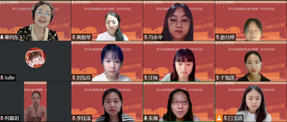 2022年8月29日晚7点到9点,辜向东教授团队于腾讯会议召开了新学期第一次线上组会。辜向东教授及其指导硕士和博士研究生参加了此次线上会议。
