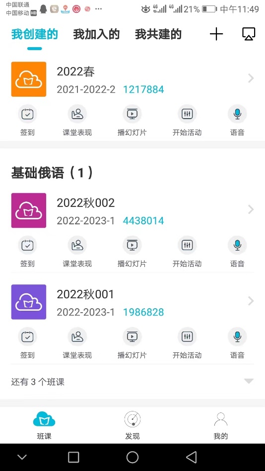 谢玉老师的教学模式是腾讯会议直播平台授课,同时利用云班课进行签到、知识拓展、作业布置、小组讨论与测试等教学活动。她认为这种形式非常符合语言课程特点,可以最快和最直接地获得上课效果反馈,便于师生互动,教师还可以实时控场,掌握教学节奏,提高课堂效率。腾讯会议的主要上课模式,如分享屏幕和音频视频播放功能满足了基本的授课需要,同时还具备签到功能,全体成员禁言管理、涂鸦画笔和聊天弹幕功能,基本创设了模拟线下课堂的情境。云班课作为有效的线上教学补充平台,它可以实现对学生学习过程的监控,并形成学生学习报告,方便教师对学生进行过程性和终结性评价。