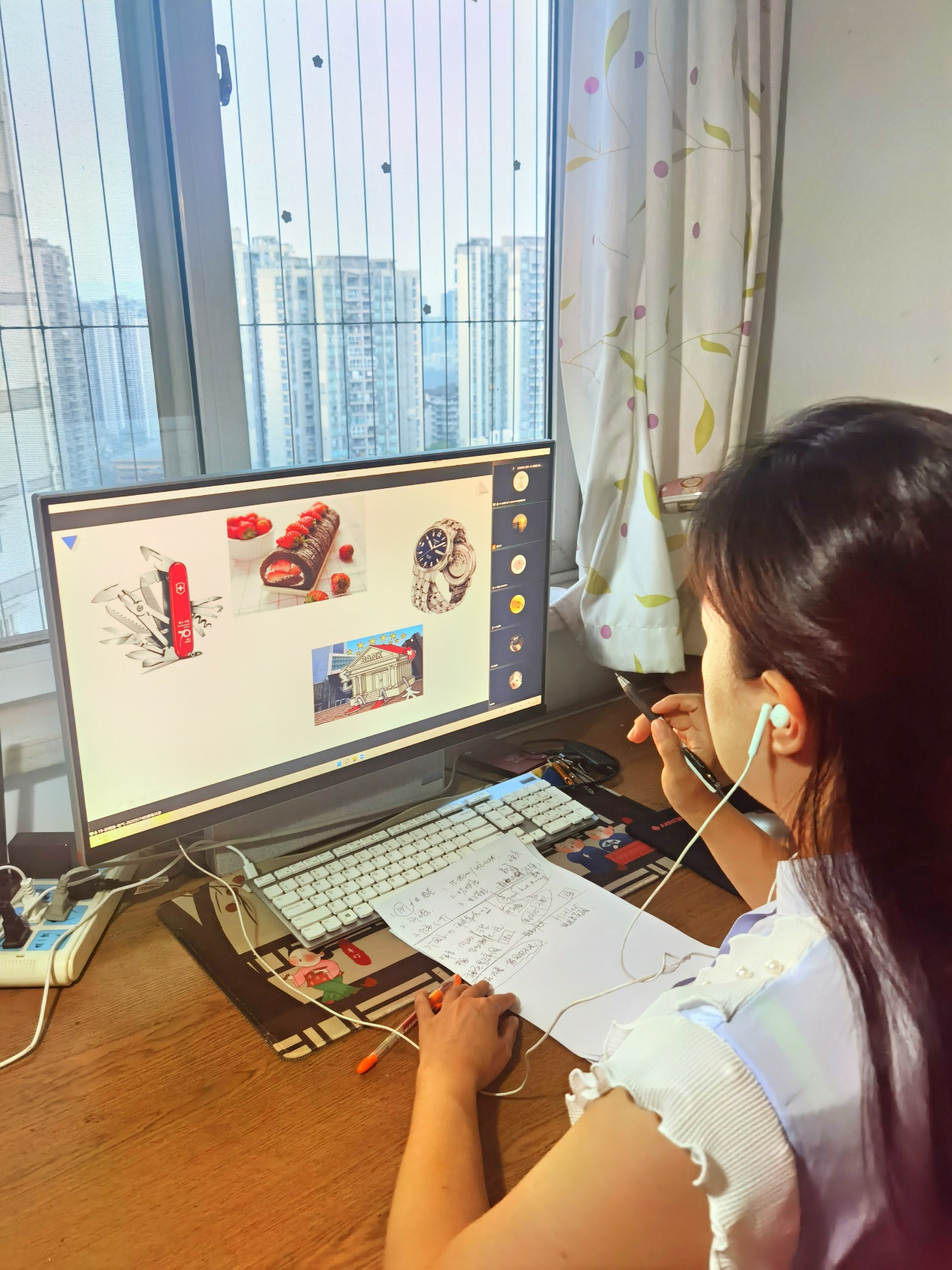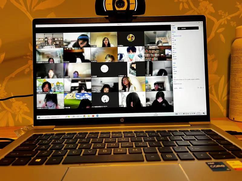 宣传片,帮助新同学直观了解学校的校情校貌,在云端初步熟悉学校整体情况。课程开始,老师们设计了各类线上破冰小活动。如杨郁梅老师请大家根据同学在头脑风暴活动中的描述,猜猜他/她从哪里来。五湖四海都是中华儿女,大家在破冰之后快速融入学习。黄莉荔老师运用语料库资源设计了词汇练习,促使同学们有意识利用技术积累词汇。