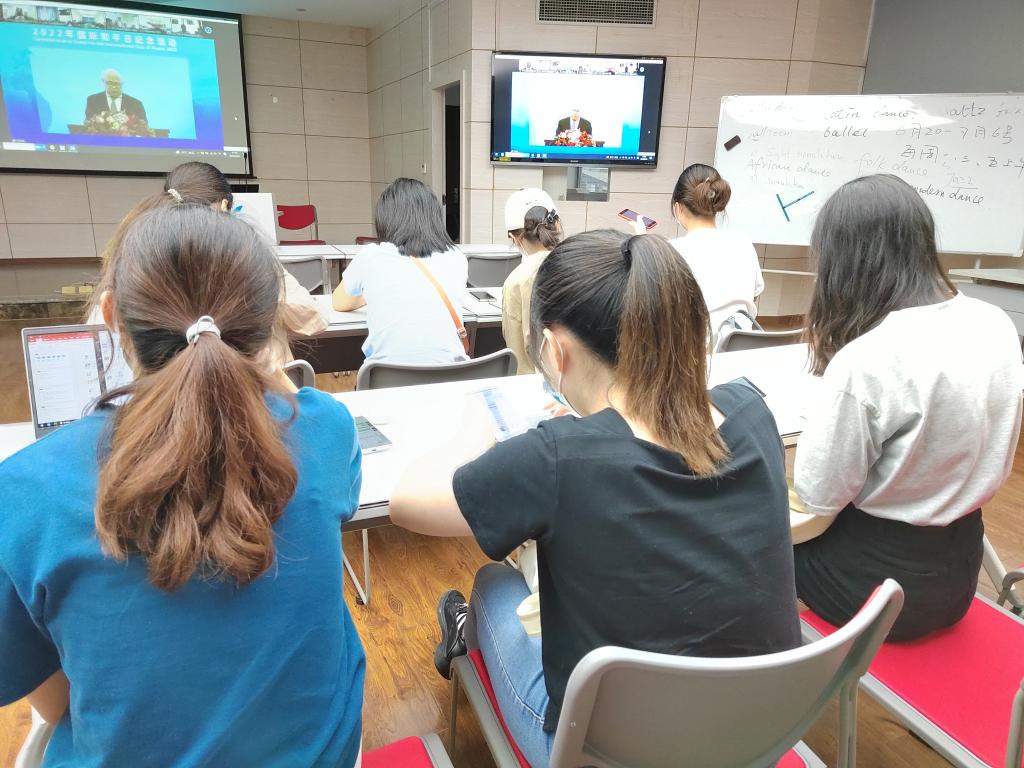 501会议室集体观摩学习了由中联部主办的2022年国际和平日纪念活动及同声传译实践。