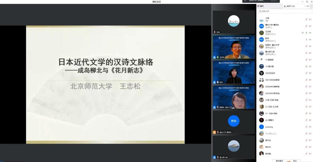 成立90周年系列讲座”,围绕“日本近代文学的汉诗文脉络——成岛柳北与《花月新志》”主题带来了一场精彩的线上讲座。讲座由日语系主任陈爱华主持,小黄书