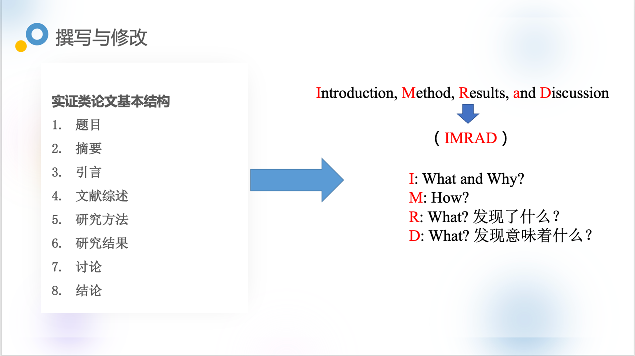 会议伊始,两名博士生和一名硕士生依次就上学期撰写的课程论文存在的不足之处、修改思路和计划完成时间等进行陈述与自我评价,提到学术论文写作中文献综述需加强核心文献梳理、深入挖掘数据、论文讨论部分要紧扣研究问题等修改方向。紧接着,三名硕士生就本周翻译会议投稿的选题构想、准备过程和困惑进行了汇报。然后,两名编外指导的学生就核心期刊发表经验,分享了学术论文各部分写作构架及注意事项。会议期间,辜向东教授针对每位团队成员的陈述进行了整体研究方向上的指导,并对文献检索、研究设计和数据解读方面进行了细致的讲解。并且指出团队内部交流协作不足,易“闭门造车”,鼓励团队逐渐发展学术交流圈,提升学术交流能力。