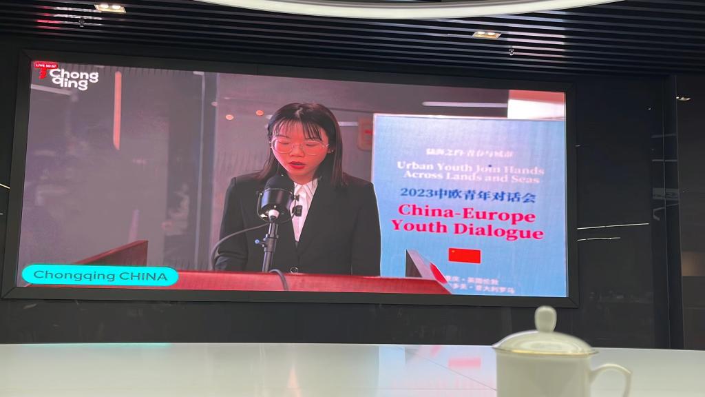 “油橪而生”研究团队研发出低碳环保且安全可靠的植物绝缘油来替代矿物油,从而推动了变压器技术绿色、高效发展。讲解了作为身在重庆的一名大学生见证了重庆作为一个传统的工业城市,在节能减排方面做出的巨大努力。胡亚悰同学以自身专业学习和研究为例,阐释了中国青年在在应对气候变化方面发挥着重要作用。胡亚悰还与欧洲青年分享了小黄书