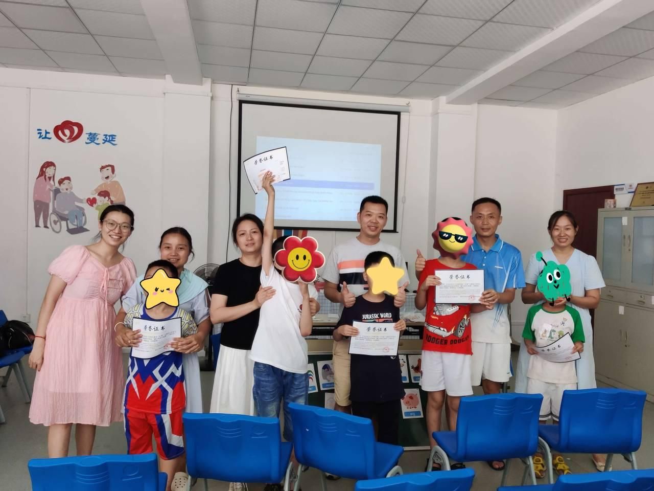 语言科学与障碍团队志愿者齐俊丽、陈肖依赴“汇爱”组织小龙坎基地为5名小朋友开展了本次暑期最后一次趣味融合英语课程。本次课程为期12次,参加的小朋友共计20余名,课堂内容丰富多彩、上课形式多种多样,得到了小朋友们的喜爱也收获了“汇爱”家长们的好评。重庆“汇爱”是致力于提供心智障碍人士(含孤独症)家长自助互助服务和交流的公益平台,专注于为心智障碍人士及家庭提供全程支持和服务,推动政府及社会公众对特殊群体的深度接触与有效支持。