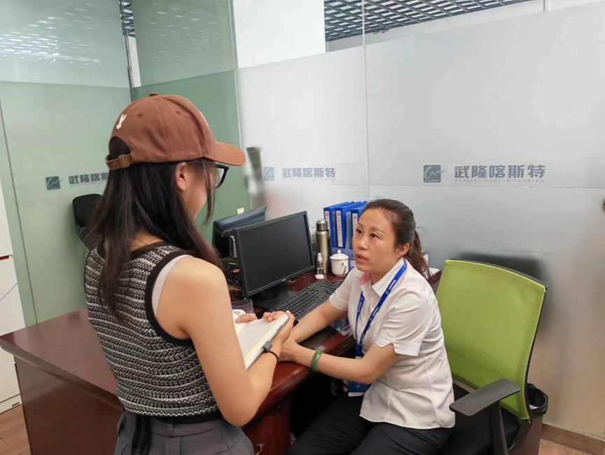 武隆喀斯特旅游区依靠的不仅是独特的旅游资源,认真负责的工作人员队伍也同样重要。向女士告诉实践团成员:“2023年以来,大众的旅游热情迅速回升。随着旅游高峰期的到来,景区已经采取了应对措施,我们工作人员也做好了准备,希望能给游客们更好的体验。”