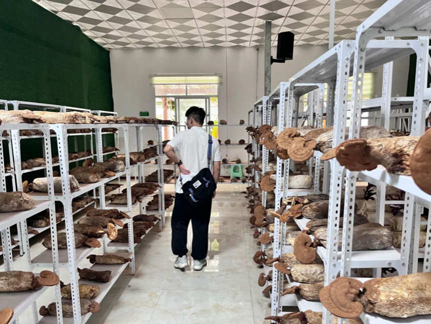 首先,实践团来到了室内农产品种植区。在这里,实践团成员们看到了土元养殖、灵芝种植和菌菇种植等现代农业种植模式。