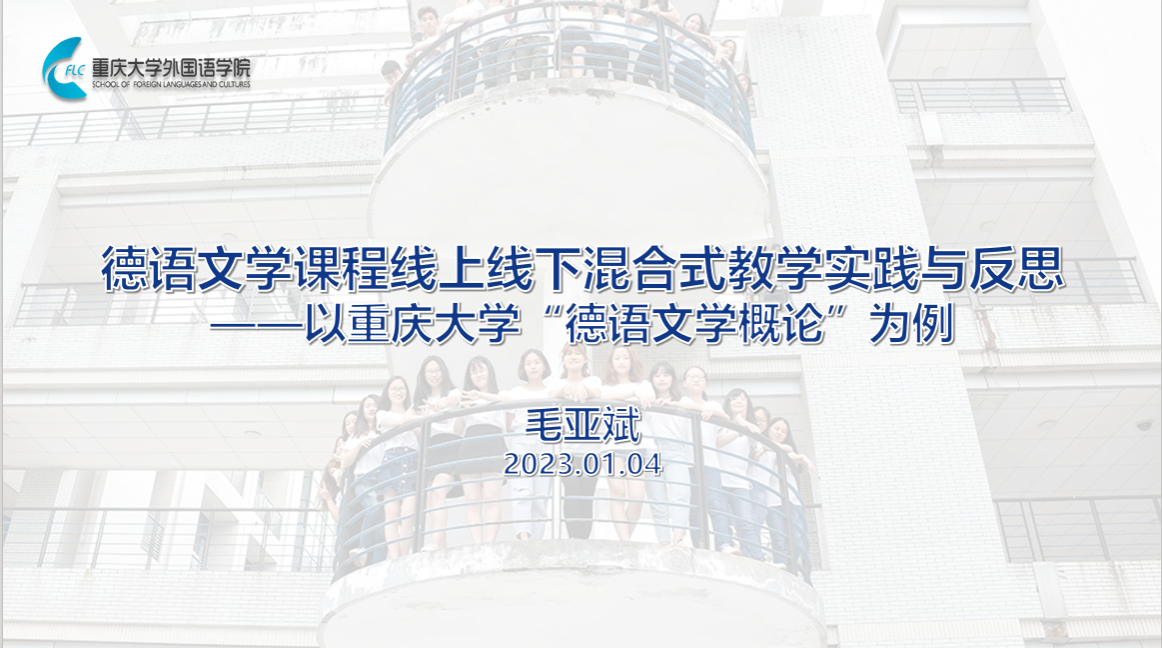 1月4日,德语语言文学文化教研室开展专题教学研讨会,会议由教研室主任向璐老师主持,由毛亚斌老师主讲,此次研讨会着眼于为一流课程建设做准备,其主题为“德语文学课程线上线下混合式教学实践与反思——以小黄书
