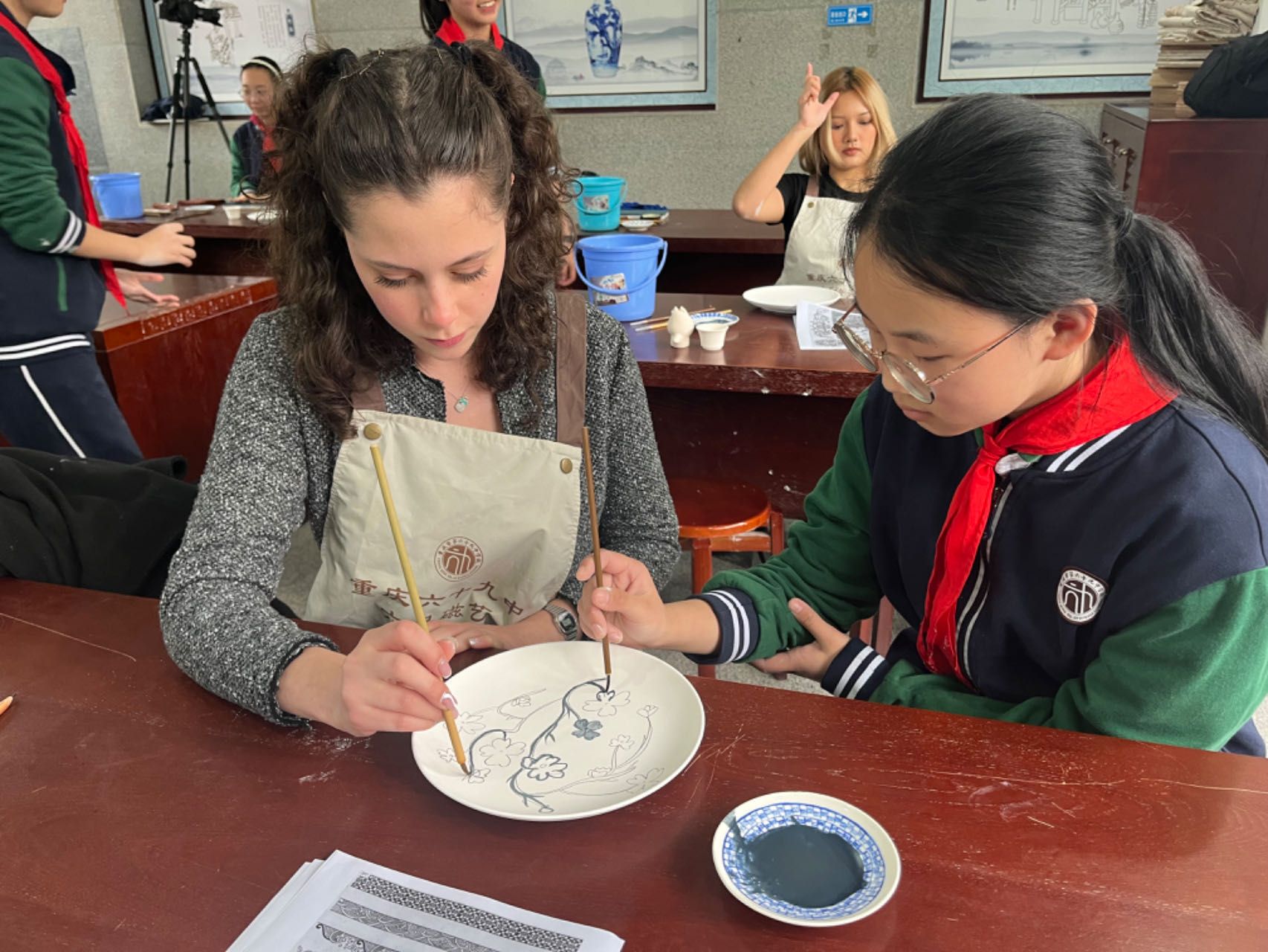 2024年3月19日下午,在国教系老师的带领下,学院本科来华留学生代表走进了位于磁器口的重庆市第69中学校,开展了一场3个多小时的瓷器文化实践交流活动。