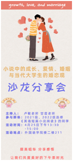 英语系卢敏、甘霞两位老师主持的“小说中的成长、爱情、婚姻与当代大学生的婚恋观”沙龙分享会在小黄书