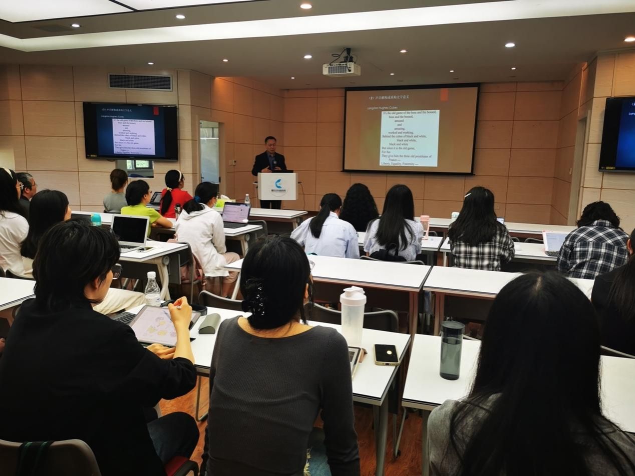 师生作了题为“多维文本理论:英语诗歌批评新视野”的学术讲座。讲座由李永毅教授主持,学院教师、博士研究生、硕士研究生和本科生参加了讲座。