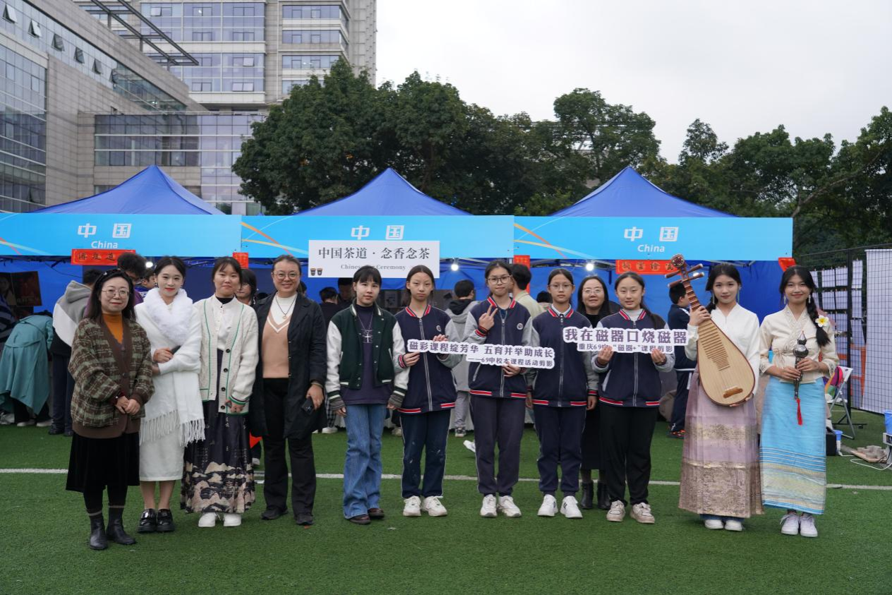 磁器展示与体验活动由“中国文化交流实践基地”重庆市第六十九中学磁艺工作坊教师精心策划。该展台不仅带来了精美的磁器作品,还让前来观赏的中外师生沉浸式体验了磁器的制作过程,丰富了大家对中国磁器的了解。
