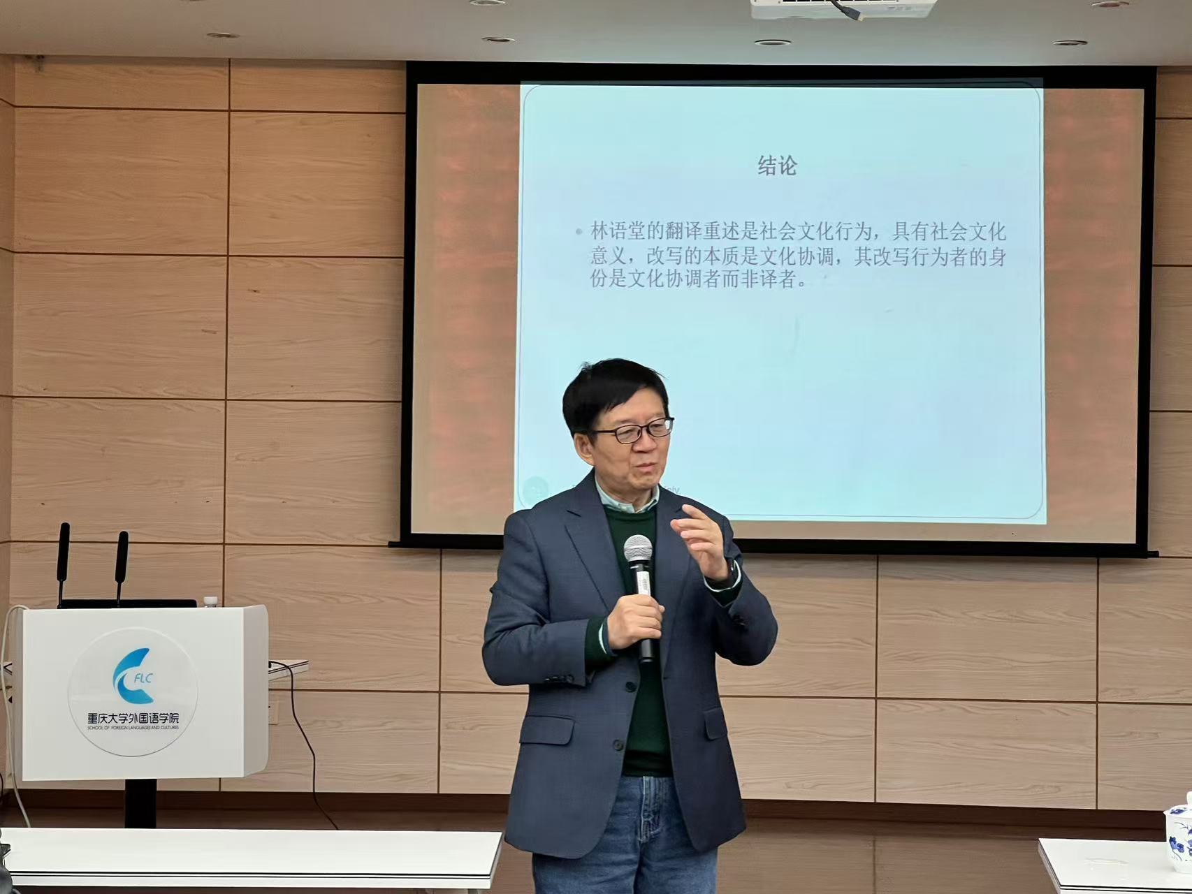讲座伊始,吕教授首先点明林语堂的翻译重述改写行为及其文化协调性。随后,围绕翻译的跨文化交流和社会文化本质属性,他深入浅出地解读了林语堂翻译重述的社会文化价值。在分析林语堂跨文化协调行为特征时,吕教授以唐传奇《莺莺传》中的具体实例展开分析,论证了林语堂的译文实现了从男权观念到男女平权观念的协调,通过文本重述将中国古代社会道德规范转换为现代西方社会的道德规范。其中,吕教授尤其强调了重述的目标,即改变文化观念,实现两种文化观念的一致性。紧接着,吕教授又以宋传奇小说“狄式”为例论述翻译中对中国传统礼教规范的协调,这些生动的翻译实例反映了林语堂的改写取向,即重塑中国女性的形象,使之升华为现代价值观的拥抱者,实现目标语文化的认同。最后,吕教授总结了林语堂改写行为的历史局限性,强调以社会文化视角进行解读以使其摆脱解释困境。