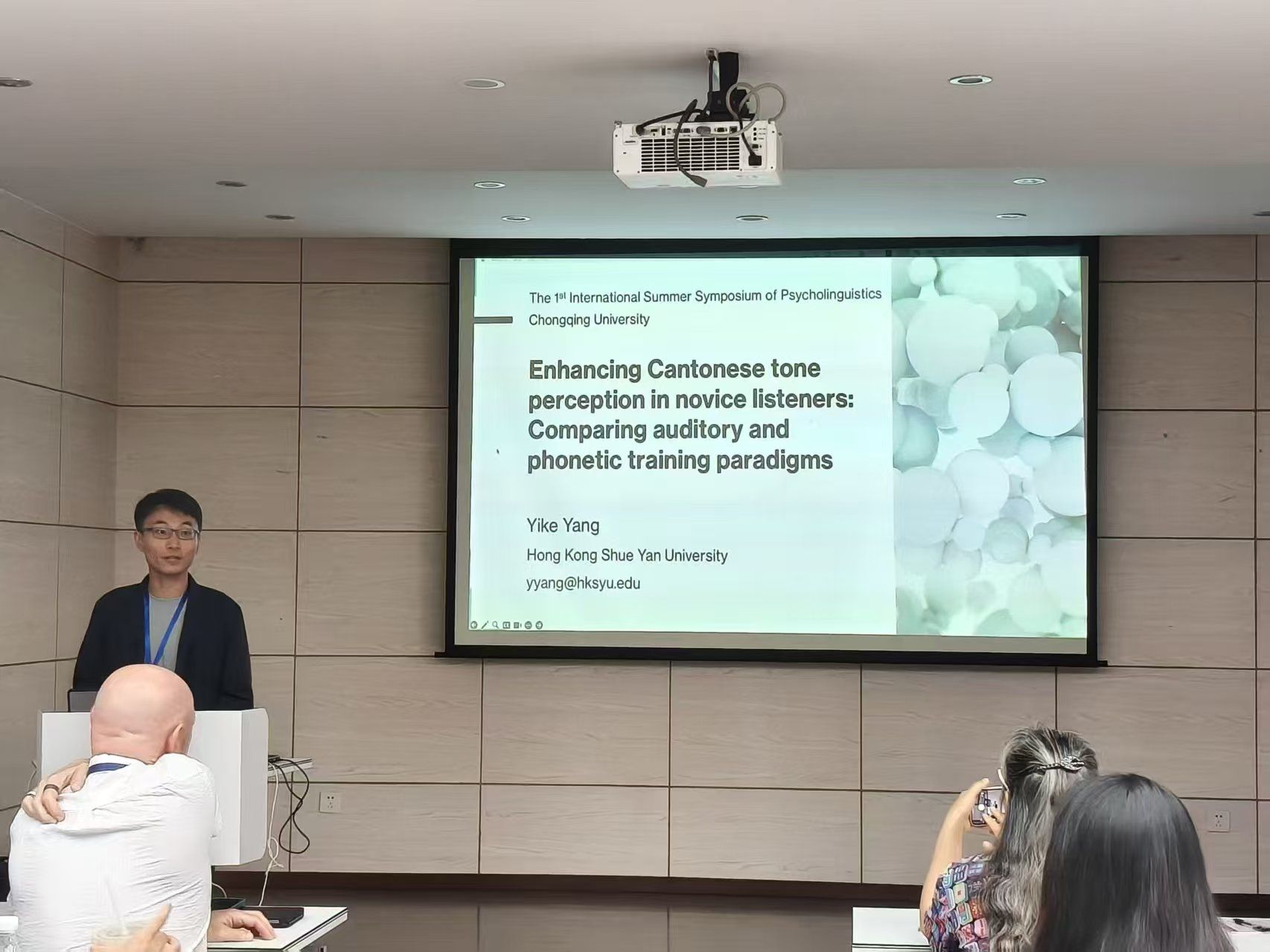 杨一可博士就其研究成果《提升粤语声调感知:听觉与语音训练模式的比较》作了精彩的分享。对比听觉与语音训练对初学者粤语声调感知能力的提升效果,并对其一般听觉处理能力的影响。研究结果显示,语音训练显著提升声调感知能力,而两种训练均能改善一般听觉处理能力。该发现为粤语声调教学及二语习得提供了新的视角,强调了语音训练在声调感知中的关键作用。