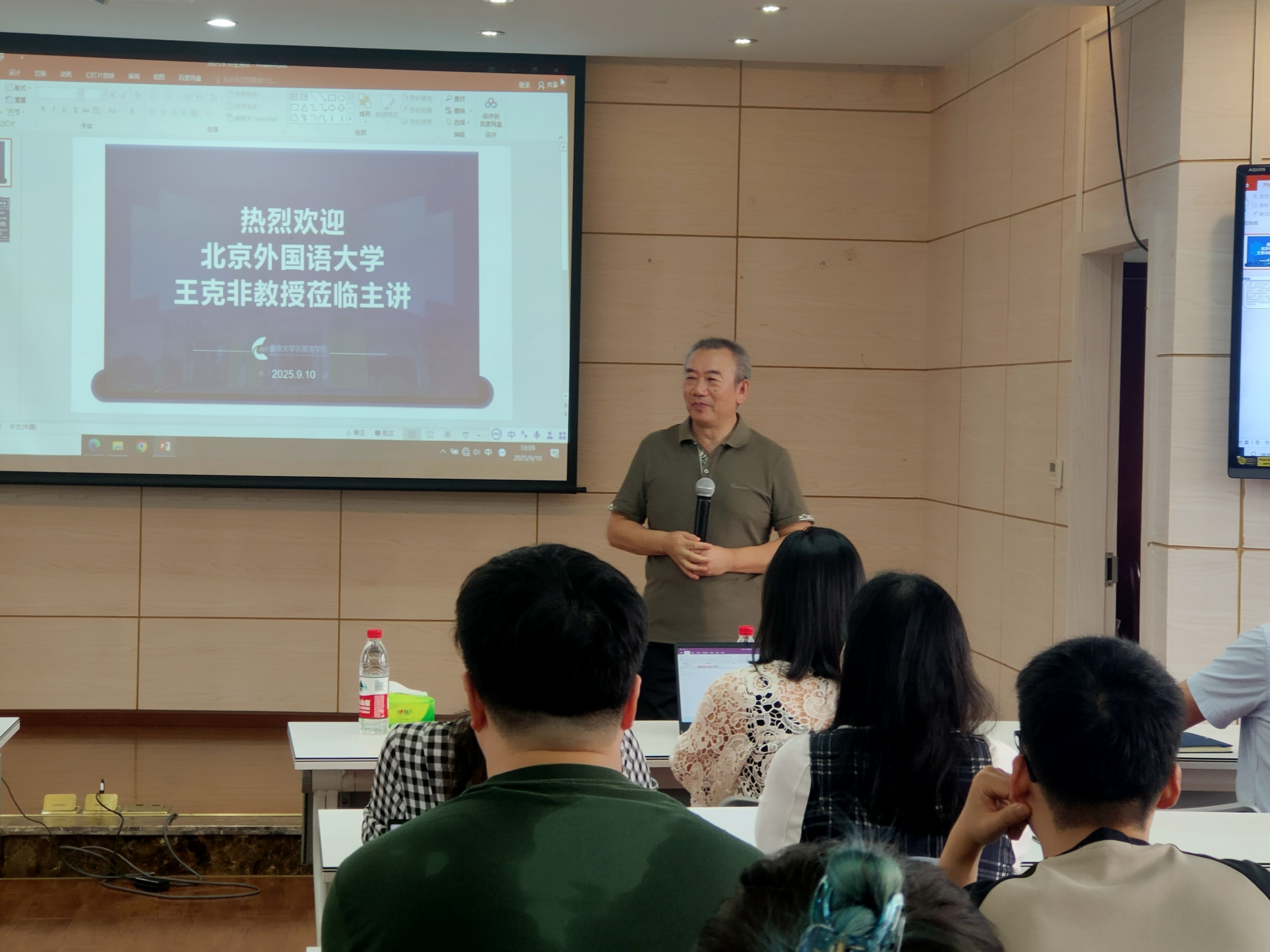 2025年9月10日上午,北京外国语大学讲席教授、《外语教学与研究》荣誉主编王克非教授,应邀在我校小黄书