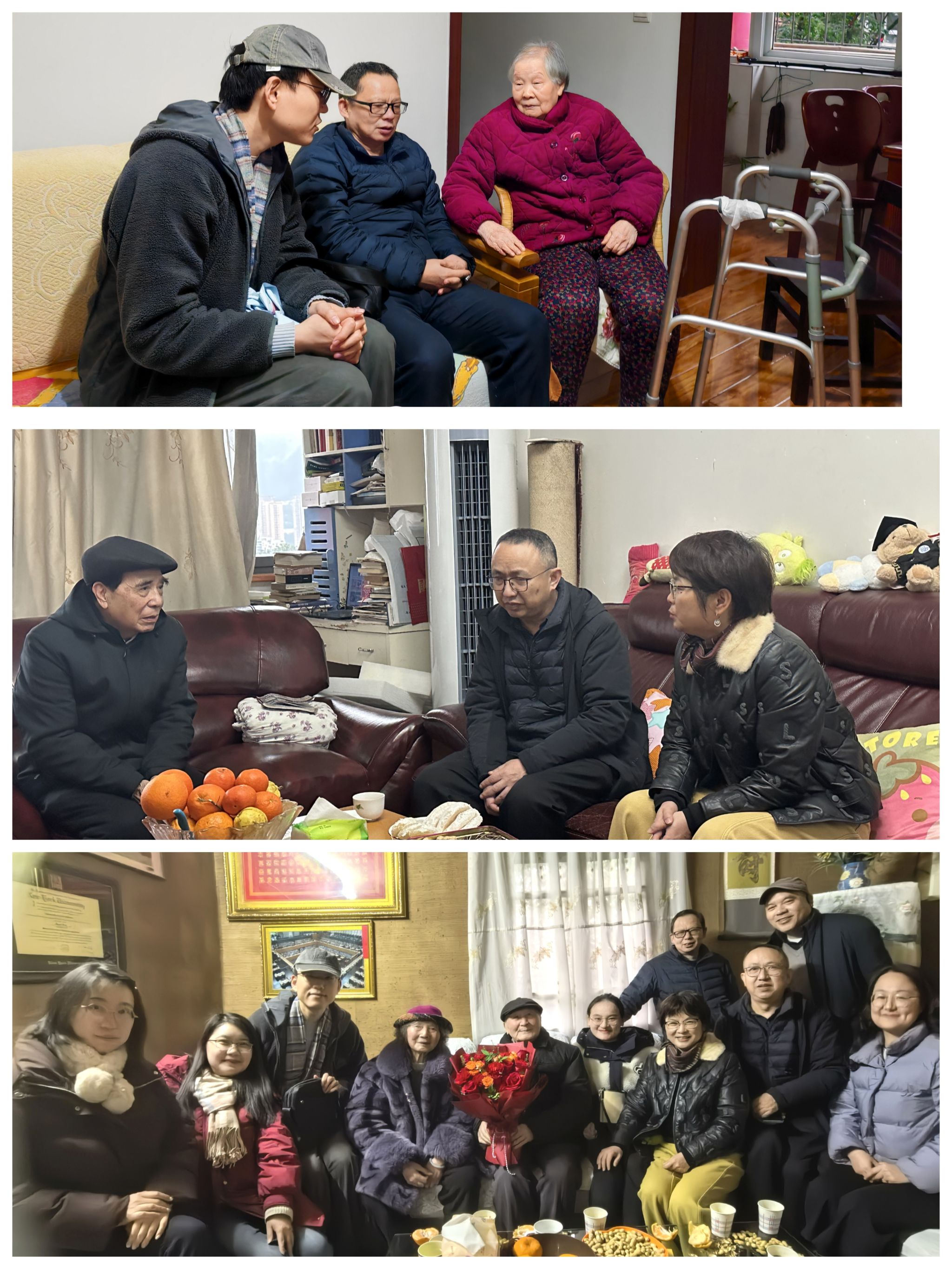学院始终弘扬尊老、敬老、爱老的优良传统。1月21日至22日,由学院党委委员、工会委员和青年博士教师组成7个慰问小组,先后上门走访11位老党员、老同志。慰问人员与老教师们亲切交流,细心询问他们的身体健康与生活状况,并代表全院师生送上真挚的节日问候。上门走访结束,学院工会还通过院内联络员,以微信、电话、电子贺卡等形式将温暖送达另外90几名离退休教职工。截至1月25日,学院2026年元旦春节走访慰问活动圆满结束。