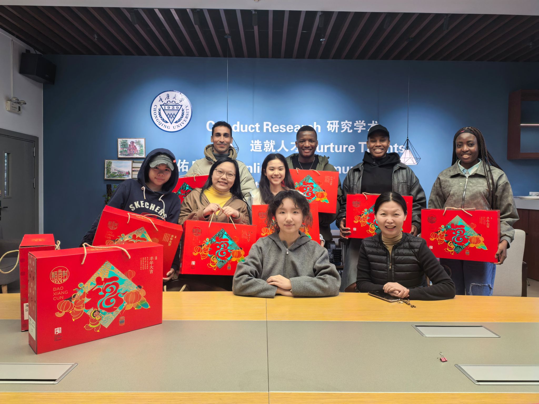 随后,学院为每位留学生送上了精心准备的春节慰问品——富有年味的中国传统糕点礼盒,寓意团圆美满、甜蜜吉祥。留学生们纷纷表示,礼盒不仅承载着中国年的浓厚情谊,也让他们在异国他乡感受到家庭般的温暖与关怀。