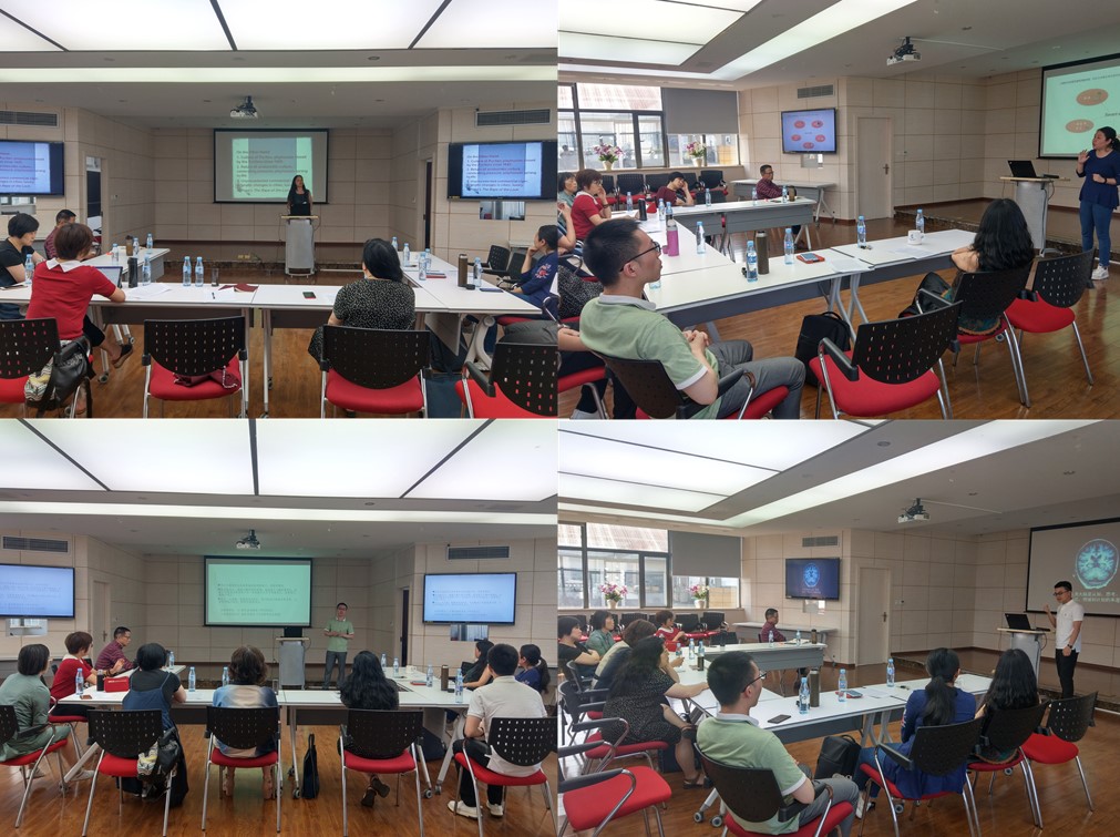 成功举办了青年教师教学分享及研讨会。此次分享和研讨会是继6月份举办的青年教师教学基本功大赛的进一步研讨,主要分享人有语言认知及语言应用研究基地莫妮娜博士,肖巍博士,曹洪文博士以及英语系李玲博士。会议由李小辉副院长主持,欧玲书记、余渭深教授、辜向东教授、毛凌滢教授以及盛荔博士参加了此次研讨。在此次分享会上,李玲老师依托经典阅读引导学生探索中西文明的精髓,阐释了语言与思想,语言与文化和文明的紧密联系。莫妮娜老师分享了在小学期期间给学生开设的有关自闭症的课程,引导学生认识自闭症,理解自闭症,了解不同学科领域学者在帮助自闭症患者方面的贡献。肖巍老师分享了针对研究生的研究方法类课程,讲解了在定量研究中假设检验所涉及到的各种因素。曹洪文博士的分享内容是语言的认知神经科学,从大脑的构成、功能以及发展引导学习者初步认识语言和认知神经科学之间的关系。