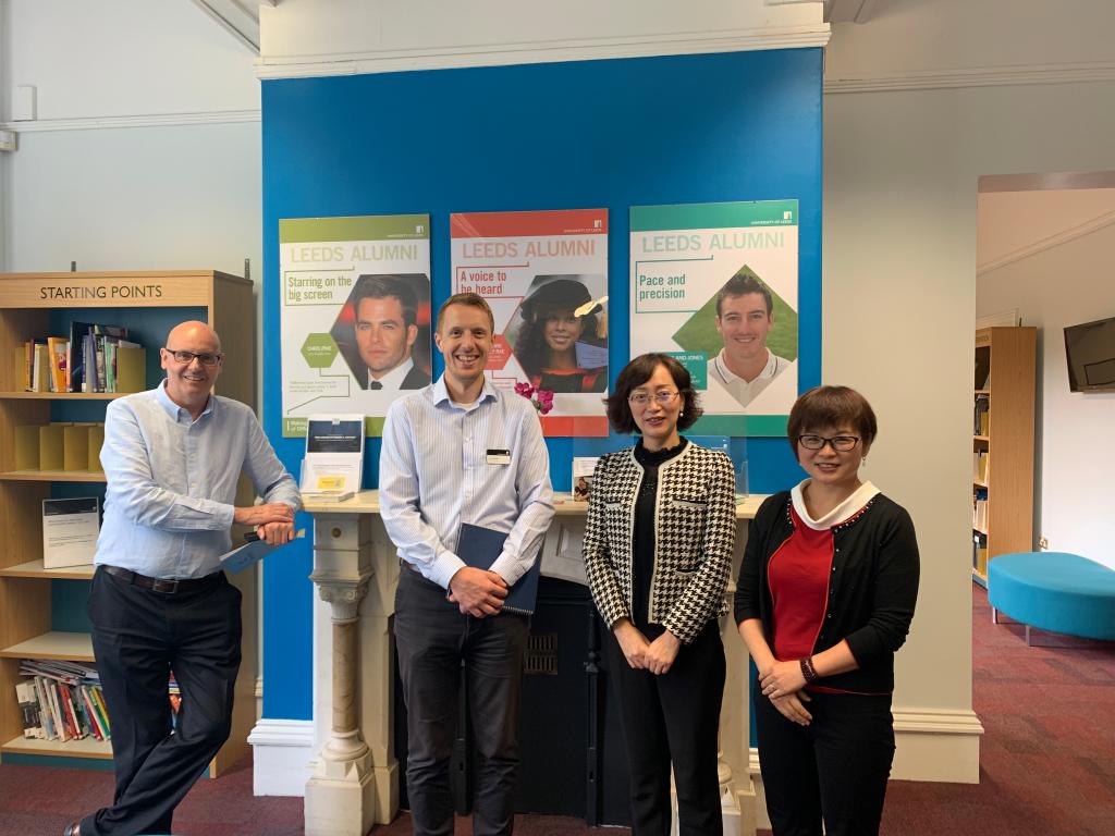 7月1日,欧玲书记一行访问了利兹大学。利兹大学国际交流处和学生就业中心相关领导接待了欧玲书记和李小辉副院长。上午在利兹大学学生就业中心,欧玲书记首先向前来咨询的博士生以及该中心相关人员介绍小黄书