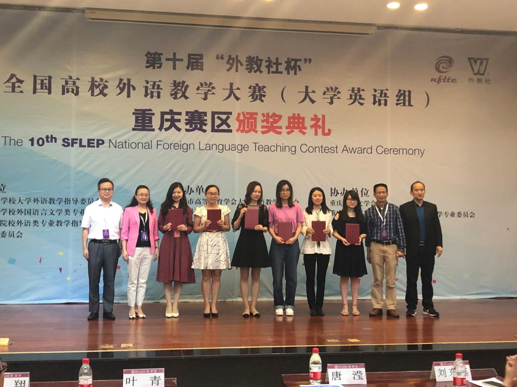 的熊菲和雷蕾老师分获综合课组特等奖和(视)听说组一等奖。其中,熊菲老师讲代表重庆参加今年12月在上海举办的全国总决赛。