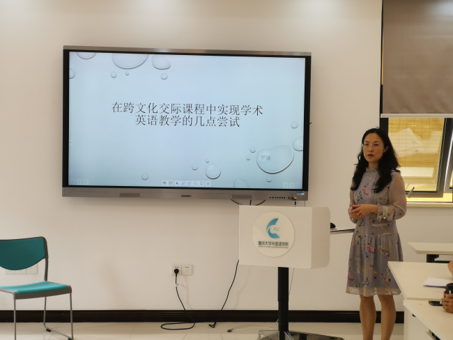 研究生公共英语课程发展与建设做了总体介绍与规划,三位担任博士生和硕士生课程的主讲教师分别对课程做了详细的介绍,并进行了课堂案例分享与展示。