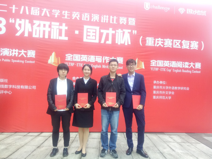 “外研社·国才杯”全国英语阅读大赛重庆赛区复赛于下午一点到三点半进行,英语专业王茜同学喜获特等奖,陈婧祎、万怡浩及程睿同学分获一等奖、二等奖和三等奖。