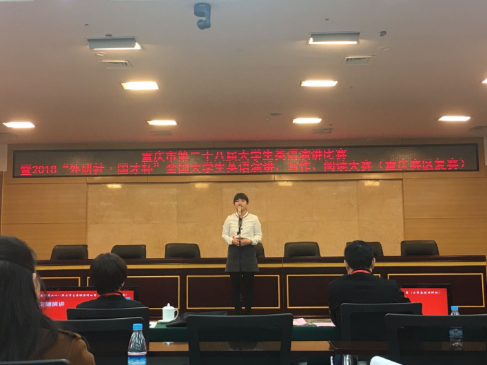 2018年10月20日,重庆市第二十八届大学生英语演讲比赛暨2018“外研社·国才杯”全国英语阅读、写作、演讲大赛在重庆师范大学举行。本次大赛共有204名来自市内高校的参赛选手,分为大学英语本科组、英语专业本科组、英语专业研究生组、大学英语研究生组等六个参赛组别,获得特等奖的选手将代表重庆市赴北京参加全国总决赛。