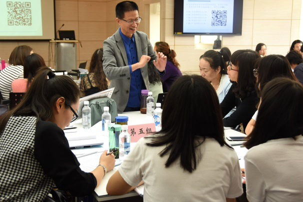 余渭深教授组织。余教授以“《中国英语能力量表》与PBL教学活动的设计”为题,引导着研修班全体教师对于2018年4月由教育部、国家语言文字工作委员会正式发布的《量表》进行总体和分项阐释,并以余老师的不同水平学生的课程为案例,分析了在大学英语课程教学中如何依据《量表》和课程大纲进行教学活动设计,实施及评价等活动。余渭深教授的主题工作坊将国家标准带入大学英语的课堂,并鼓励教师们结合教学实际对《量表》进行分析、评价,共同促进《量表》的科学性及合理性。
