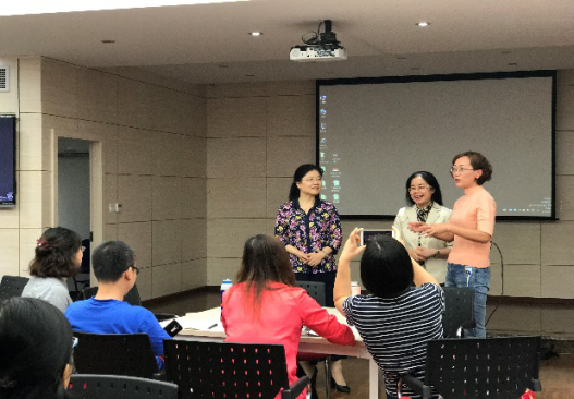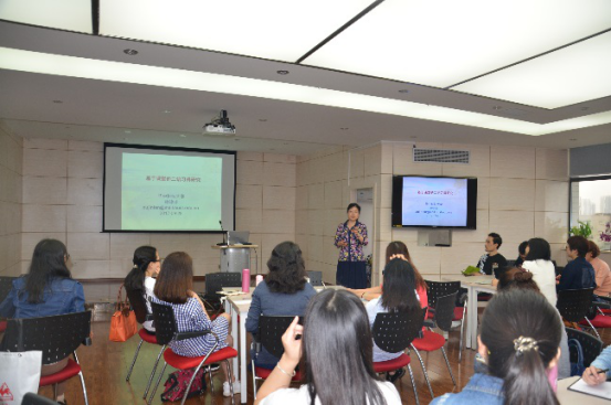 女性教师多的特点,徐锦芬教授首先从个人家庭主妇身份讲起,分享了如何处理好家庭、教学和科研之间关系的成功经历。然后梳理了从语言教学中师生关系、教师与教材,课堂环境的构建、教学方法、有效教学的特征、优秀教师的特征到教学评估、第二课堂及“互联网+”时代的学习等大学英语教学中所涉及的热门话题,并进一步就可以开展研究的方向及须要深入了解的理论框架做了详尽的介绍,同时徐教授还以她近十余年来发表的60余篇SSCI、CSSCI高水平论文为例,强调大学英语教学及研究本身就是每一个大学英语教师的事业,老师们要有培养敏锐的研究视角、打下扎实的教学实践和理论研究基础。第一场讲座之后,小黄书