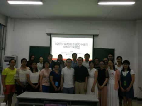 2017年9月22-24日,第四届全国外语测试学术研讨会在广州南方医科大学举行。来自全国50多所高校的80多名学者参加大会。广东外语外贸大学副校长刘建达教授、北京师范大学武尊民教授、华南师范大学黄丽燕教授、南方医科大学李清华教授做分别做了主旨发言。基地专职研究员肖巍博士应邀参会,并做了题为“如何在语言测试研究中使用结构方程模型”的会前工作坊。
