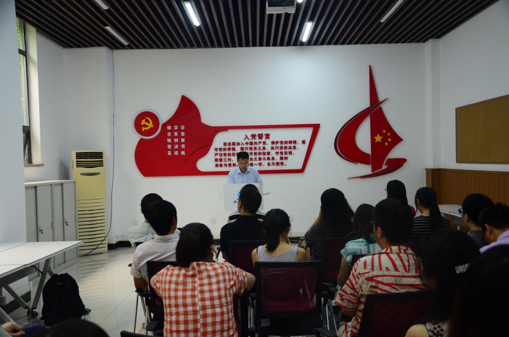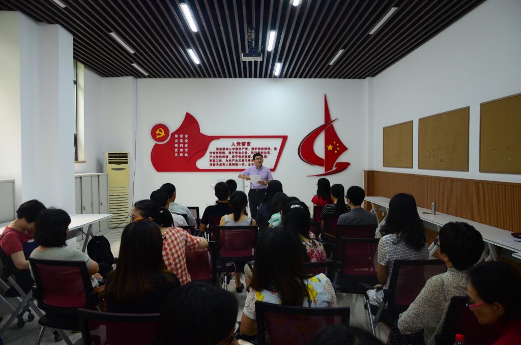 党委组织全体教职工党员和入党积极分子在学院党建活动室开展了以“增强党性修养,勇当时代先锋”为主题的重温入党誓词活动,活动由党委副书记何建华同志主持。