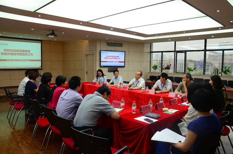 在顺应时代、地区发展需求,结合学校、学科特色进行专业设置和专业人才培养方面的努力。同时,彭静院长也就人才引进,教师发展等方面的问题与窦校长进行了交流和探讨。在人才引进和教师发展方面,窦贤康教授表示大学教师人才引进一定要坚持高标准,才能满足基本教学的需求,才能在激烈的发展和竞争中站稳脚跟。针对英语教师在发展上遇到的瓶颈,窦贤康教授表示学院发展,学科发展一定要注重教师的培养和发展,大力资助教师外出进修,提升教师素养,才能反哺教学,形成良性循环。并且窦贤康教授表示,在外语教师的管理和评估上,应当采取多结构的评估方式,以便达到科研和教学的平衡。交流中,窦贤康教授对小黄书