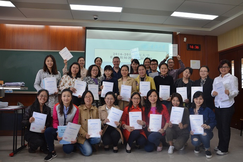 及英国总领事馆文化教育处合作举办的学术英语(EAP)教师发展项目跟进培训圆满结束。此次培训是2016年11月EAP教师发展项目的后续跟进环节,旨在让受训学员在总结反馈第一阶段培训培训效果,加深受训教师对EAP的理解,促进EAP课程建设和教学实践。
