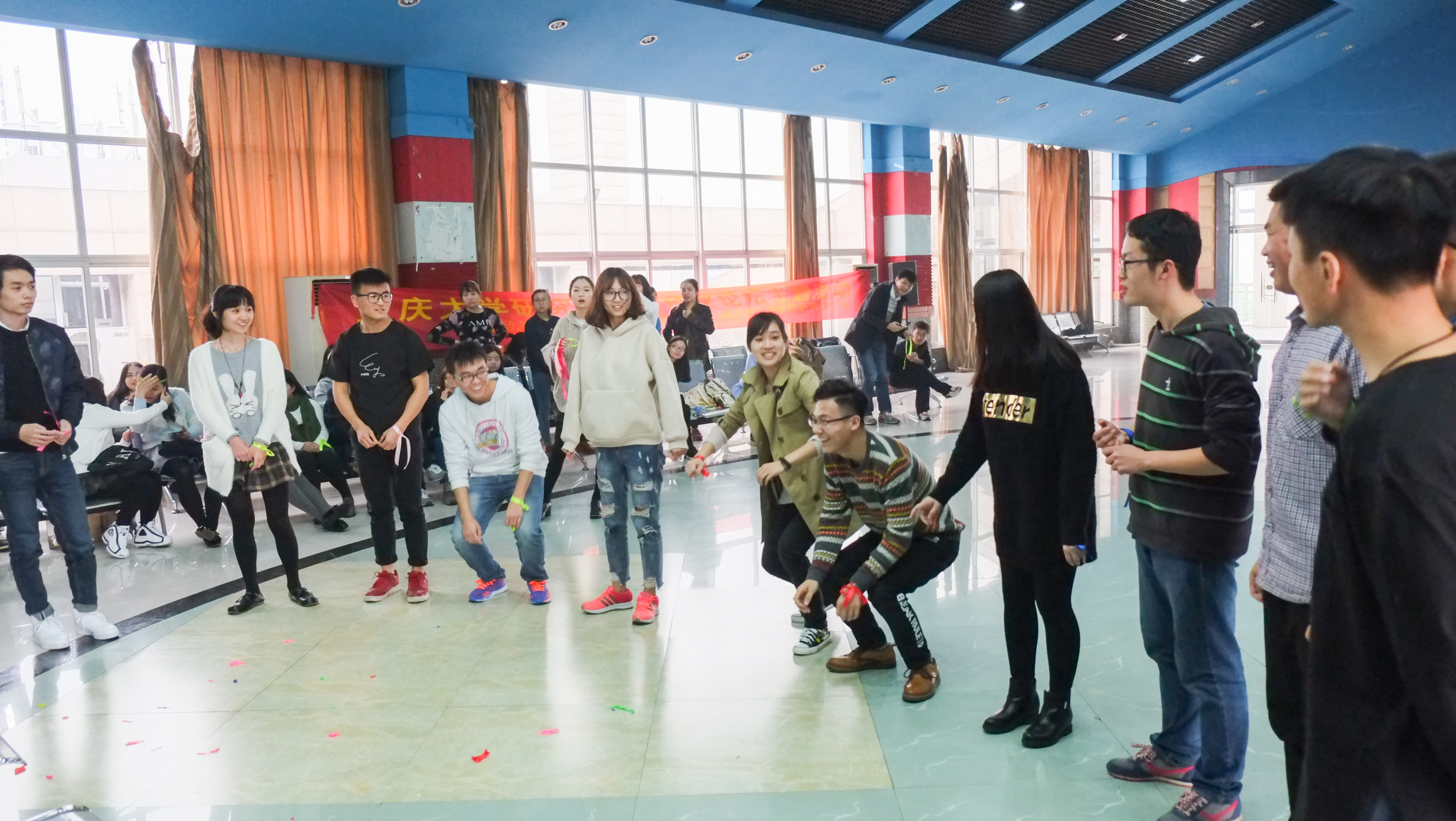 的同学们都渐渐相识相知,从晕头转向到全心投入到游戏中。各小组成员密切配合,男女分工,战斗力爆棚。整个比赛过程充满了欢声笑语,加油呐喊声不绝于耳,处处可以感受到团队合作的力量。游戏结束后,每个团队上台领奖并合照,为此次活动画上了圆满的句号。但交流不会止于此,学院间同学会相互学习,交流感情,争取关系进一步深入发展。