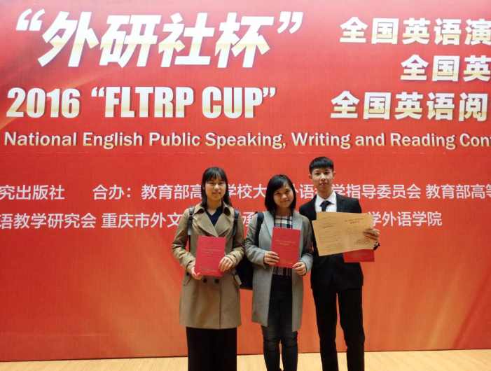 英语专业本科生徐航波同学在“外研社”杯重庆赛区阅读大赛中荣获特等奖,并进入全国决赛。非英语专业本科生唐心怡、宋承儒同学在10月29日上午的重庆市英语演讲大赛决赛中取得了特等奖的好成绩,并在当天下午的“外研社”杯英语演讲大赛复赛中并分获第5名和第8名的好成绩。同时,英语专业研究生董一丹同学获“外研社”杯重庆赛区阅读大赛三等奖,非英语专业本科生蒙泓延和高诗情分别获得“外研社”杯重庆赛区阅读和写作大赛优胜奖。
