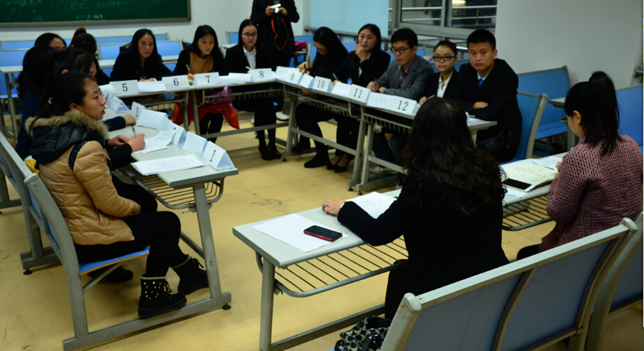 B区第二综合楼举行,整个赛程从上午9点开始持续到下午3点结束。面试初赛邀请到的评委有仲量联行(外企)重庆公司人力资源总监;长安福特汽车有限公司(合资)人力资源经理以及中电投远达环保工程有限公司(上市公司)国际合作部经理。另外,来自于外语学院研究生公共英语系的黄萍教授,向朝红副教授及李雁老师参与协作初赛的全过程。面试初赛由三位专业的评委对选手在群面及单面环节的表现分别进行考量与评分,三位英语老师不介入考评,体现了比赛的真实性,公正性与专业性。本次英语面试不仅需要面试者有较好的英文口头交际能力,还对逻辑思维能力和沟通协调能力等提出了更高的要求。虽然第一次参加这样的英文面试,涉外组面试者的表现却丝毫不逊色于中文组。三位评委表示,选手们的表现可圈可点,在模拟面试中表现出了真正求职者的姿态,希望选手们能够将比赛中学到的经验运用到日后的实际招聘中。比赛结束之后三位评委还与三位老师进行了交流,她们传递的用人单位对人才要求的信息为我校英语教学改革提供了许多宝贵的启示。经过初赛后,在报名参加比赛的76名选手中,最终筛选出6位优秀选手进入决赛。
