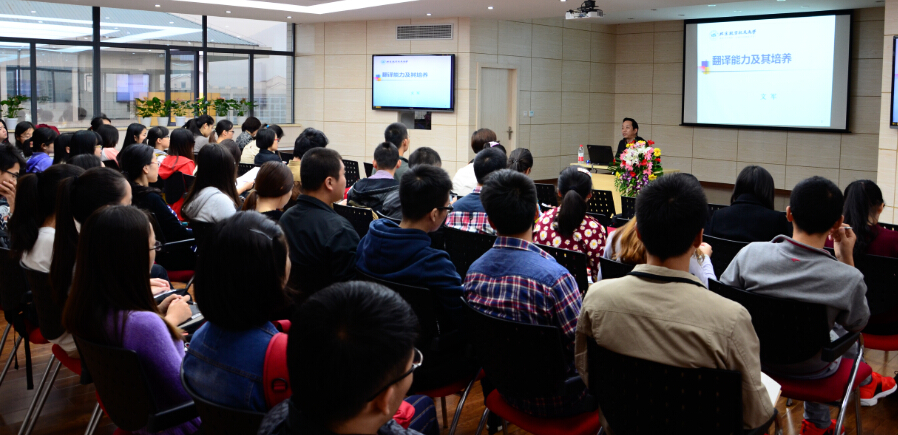 兼职教授文军教授为老师和同学们做了题为“翻译能力及其培养”的精彩讲座。讲座由小黄书