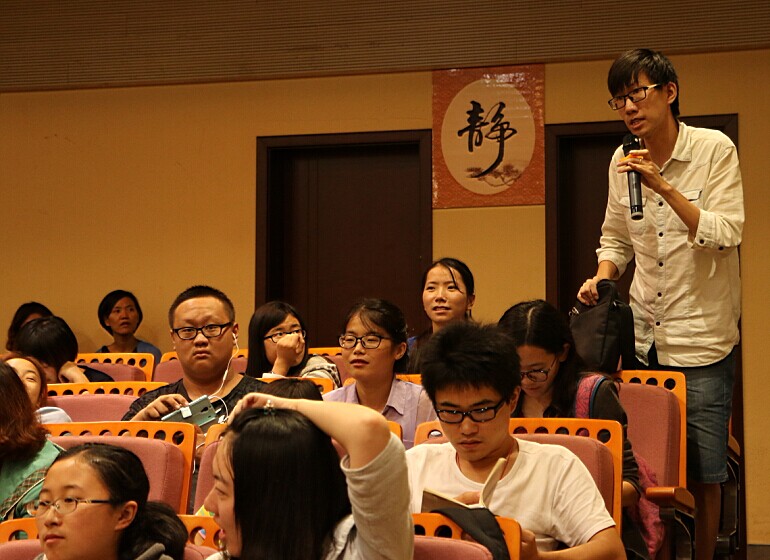 在精彩的说道中时间不知去哪儿了。学生们一边听道一边积极深入思考悟道,有两名学生 “荣幸”地赢得与大家对话的机会,问答环节使讲座现场活跃且充满着学术气息。