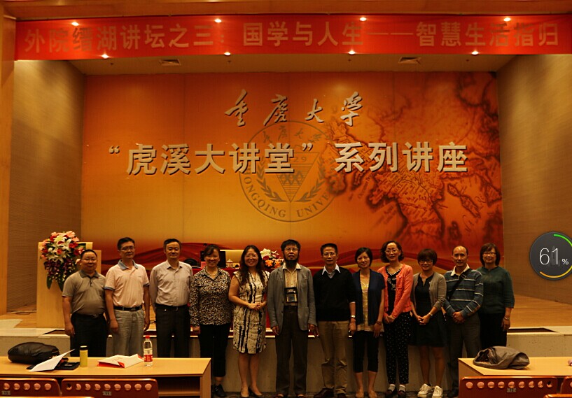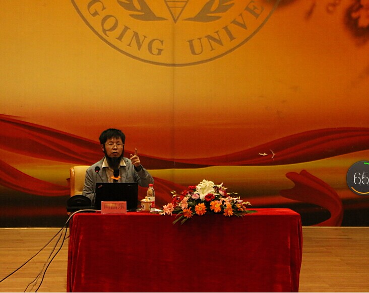 阴雨绵绵的重庆,淅淅沥沥的秋雨浇灭了夏日的炎热,但熄灭不了师生对国学的向往和热情。师生们陆陆续续来到讲座现场,敬畏而有序地就坐。下午3点,讲堂内已座无虚席。统战部陈跃英副部长,公共管理学院杨长福教授、基因工程研究中心主任夏玉先教授、基建规划处王俊才副处长等党外知识分子联谊会会员和小黄书