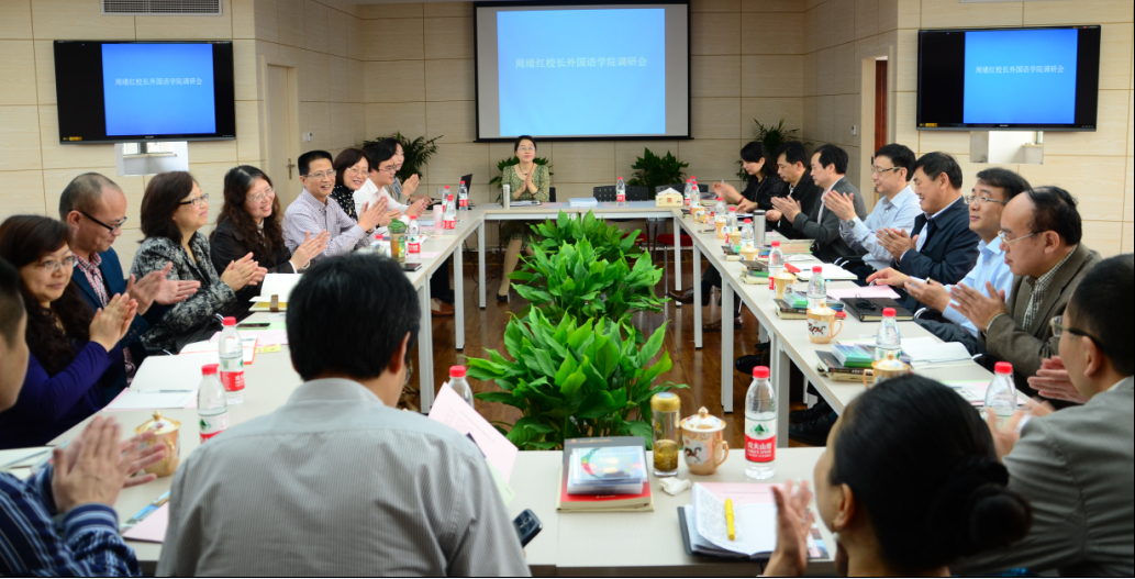 的关心和支持表示衷心感谢,对领导们深入学院调研热烈欢迎。外语学院党政领导班子全体成员,学院各专业系、大学外语教育中心及研究基地的部分负责人、教师代表参加了调研座谈会。