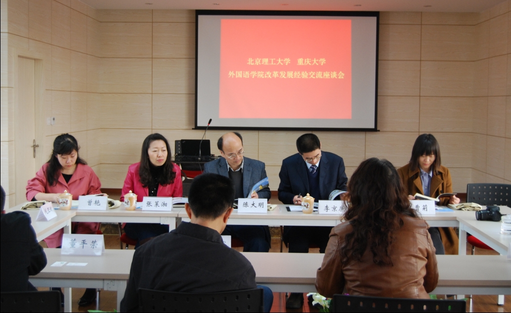 院长李京廉分别介绍了双方参会人员。李红院长向北京理工大学调研团队简要介绍了学院组织架构、教学、科研等情况,随后双方就二级学科硕士点的建设,大学英语的学分设置、学时安排、师资配置,学院的人才引进、职称评聘、岗位聘任、岗位考核,专业学位硕士点建设、学生培养、师资配置等问题进行了深入细致的讨论,双方交流了各自在处理这些问题时所总结的经验,并且就如何更好的处理相关问题进行了探讨。