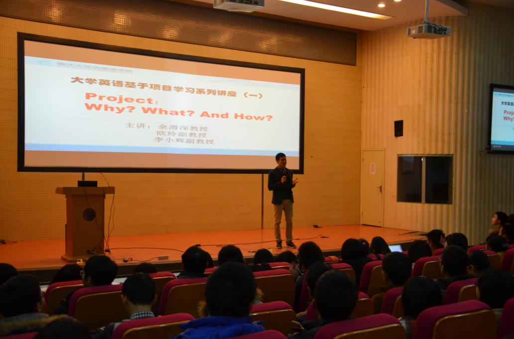 为进一步培养学生的基本学术素养,本学期创新课程组要求学生进行小组形式的项目研究(Project Research)。根据项目研究的执行细则,第一次公开讲座于2月26日晚7点在DZ126举行。本次讲座主题为: Project: Why? What? And How? 外语学院余渭深教授,欧玲副教授和李小辉副教授就项目的三个方面为13级全体学生带来了一场精彩的讲座。为培养学生使用英语进行研究和交流的意识,讲座全程使用英语进行。讲座由王旭老师主持。