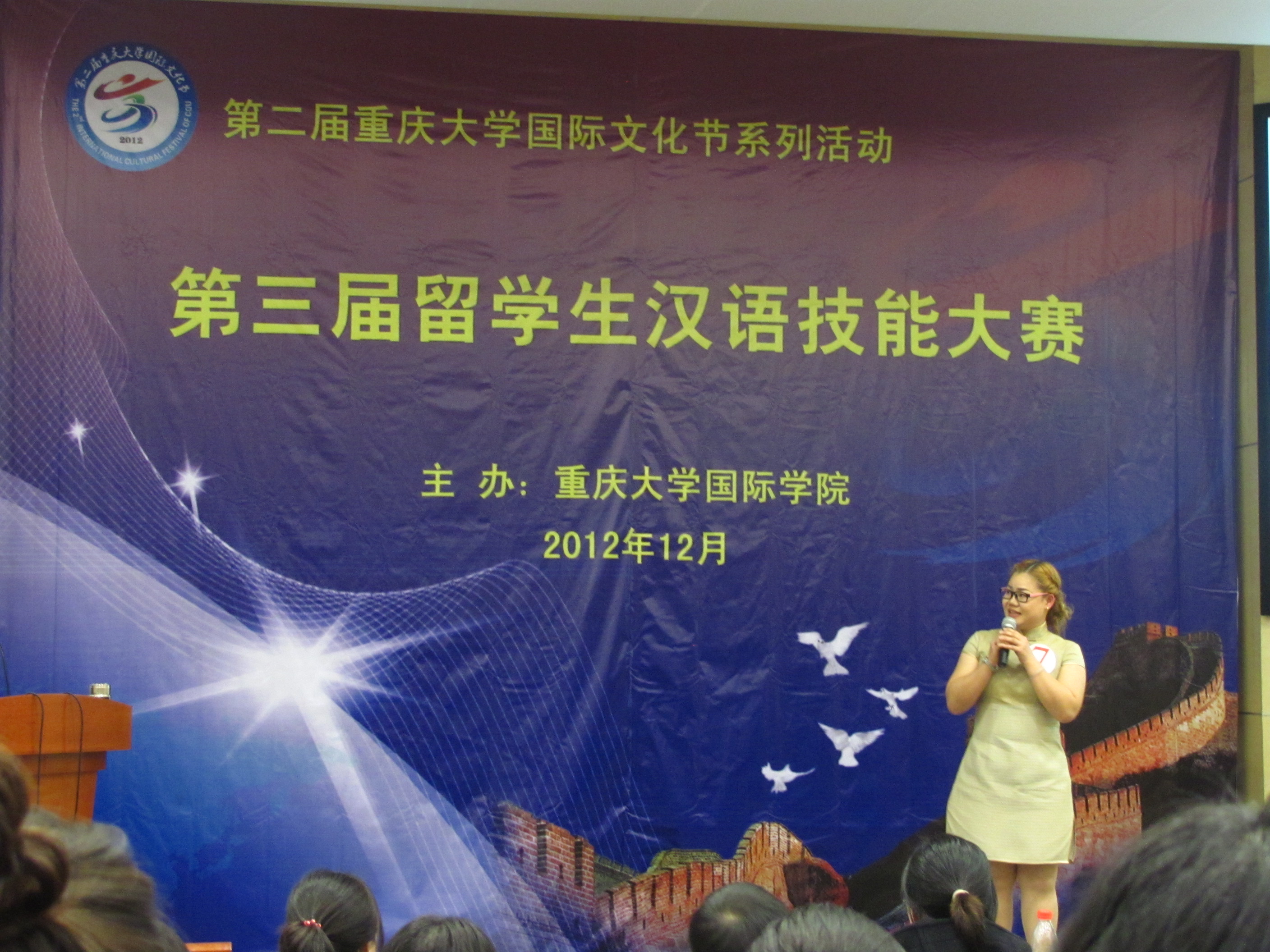 留学生汉语技能大赛决赛在A区国际会议厅举行。10位来自韩国、泰国、美国等国家的重大留学生和四川小黄书
