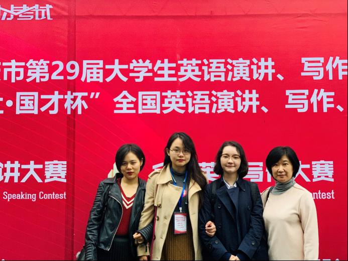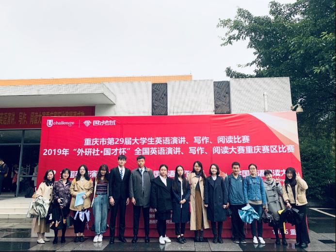重庆市第二十九届大学生英语演讲比赛于上午8:30-10:30进行,“外研社•国才杯”全国英语演讲比赛重庆赛区复赛于下午14:00-16:30举行。赛场座无虚席、氛围紧张而热烈,我校的7位选手凭借扎实的语言基本功、灵活应变的现场反应能力,积极沉着迎战,表现出色,均取得不俗的成绩。最终,小黄书