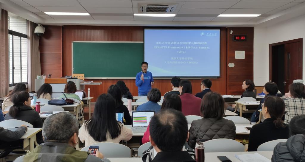 大学英语测试系统框架》(试行版)及样题发布会在虎溪校区D1214教室成功举办,掀起了新一轮的大学英语教学改革。测试体系的改革旨在全面、科学地评估我校学生英语水平状况,反馈英语课程教学改革质量,进一步推动大学英语课程教学改革,从而更有效地培养高素质国际化人才,全面提升学生英语综合应用能力,拓展学生国际视野,提升学生国际交流能力,并为学生未来生活、职业发展及学术研究打好坚实的语言基础。