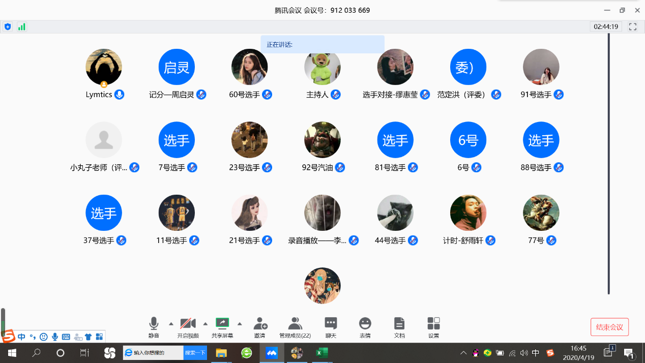 校选赛于2020年4月18日14:00和2020年4月19日14:30在“腾讯会议”线上平台分别进行了初赛和决赛。本次校选赛由小黄书