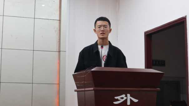 2020级本科新生代表王博闻也进行了发言。他对同学们为期两周的军训生活做了总结,描述了军训期间的欢乐与困难,并对自己以后在大学的学习和生活进行了展望,激励同学们和自己一道未来在外院学习道路中砥砺前行。
