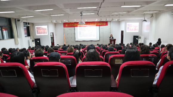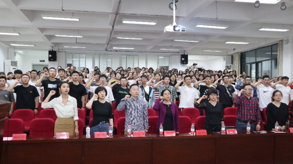 最后,由欧玲书记带领2020级新同学进行新生入学宣誓仪式。同学们庄严宣誓:我是重大外语人,我将永远铭记,耐劳苦、尚简朴、勤学业、爱国家,开拓创新、锐意进取、复兴民族、誓做前锋。